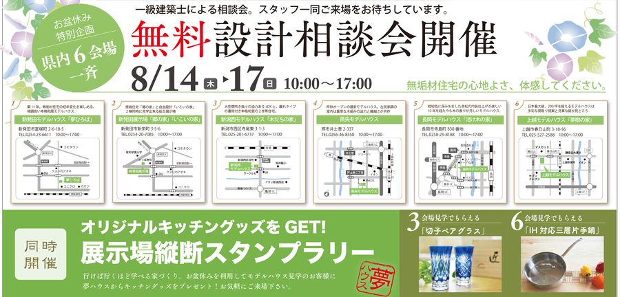 行けば行くほど学べる家づくり。お盆休みを利用してモデルハウス見学のお客様に夢ハウスからキッチングッズをプレゼント! お気軽にご来場ください。